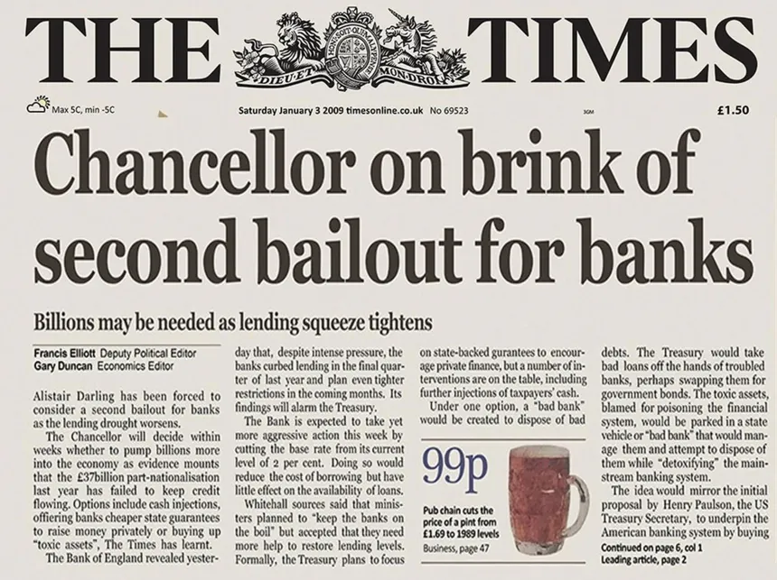 The Times 03/Jan/2009 Chancellor on brink of second bailout for banks.